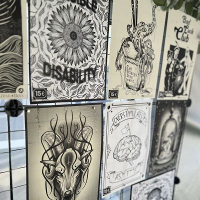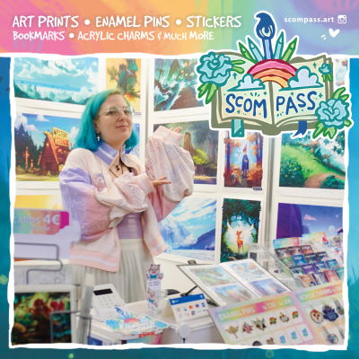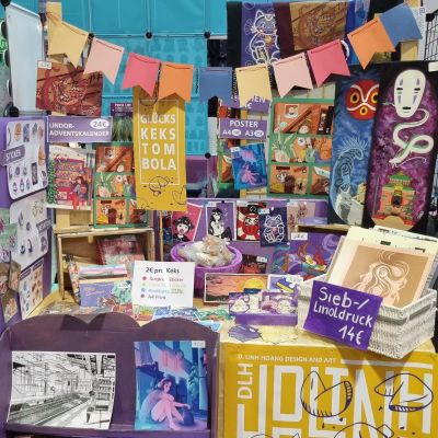 Ich habe jede Menge Sticker, Schlüsselanhänger, Magnete, Prints, Originale, Totebags, Buttons und anderes Tolles dabei.
