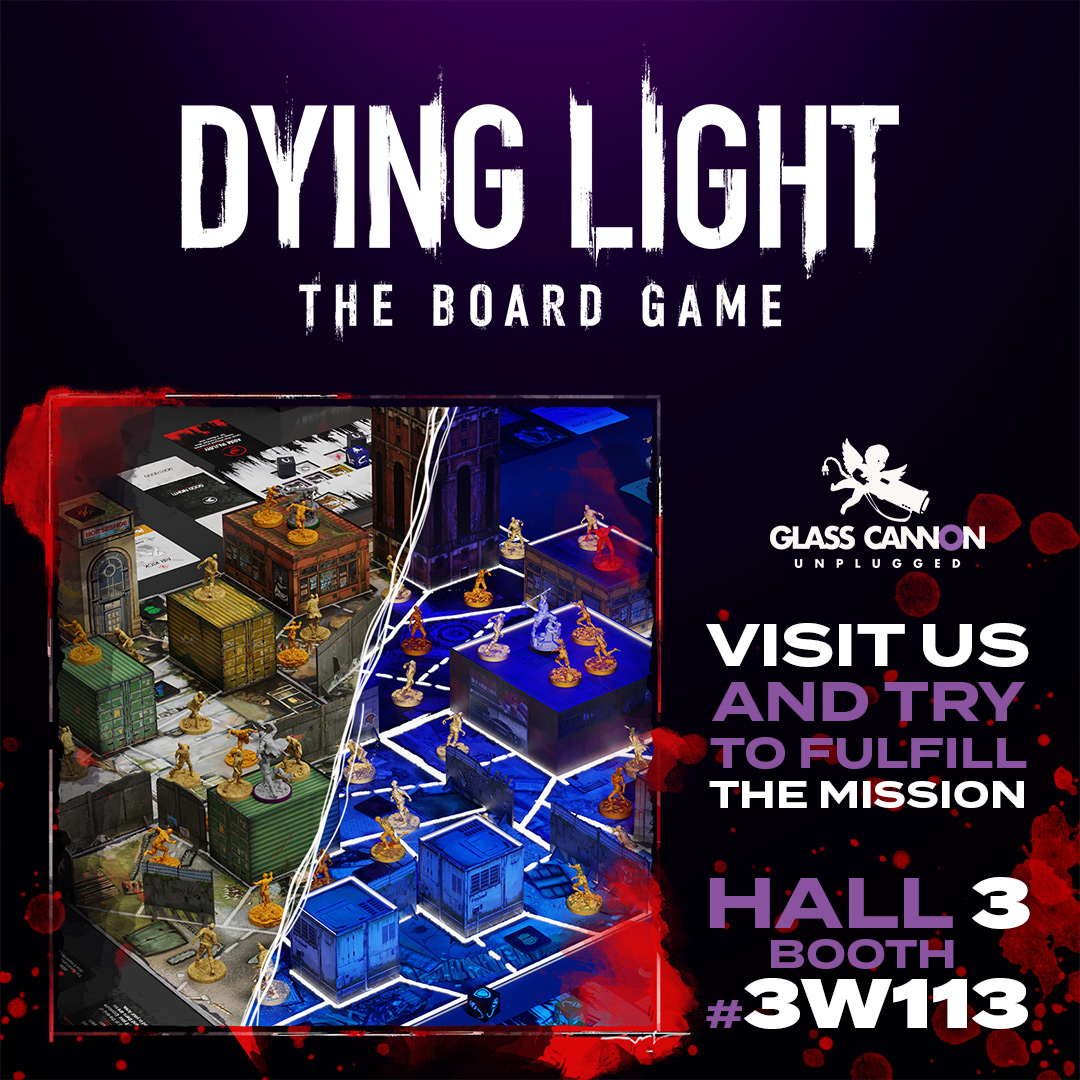 Glass Cannon Unplugged is bringing the GCU Outpost to Spiel Essen with a critical mission: secure the outpost and protect a prototype of Dying Light: The Board Game, enhanced with photoluminescent components that glow under UV light. The safe haven is under threat, and the task falls to you to recruit a trusted ally, investigate what happened in the darkness, and retrieve evidence to ensure the outpost’s safety.